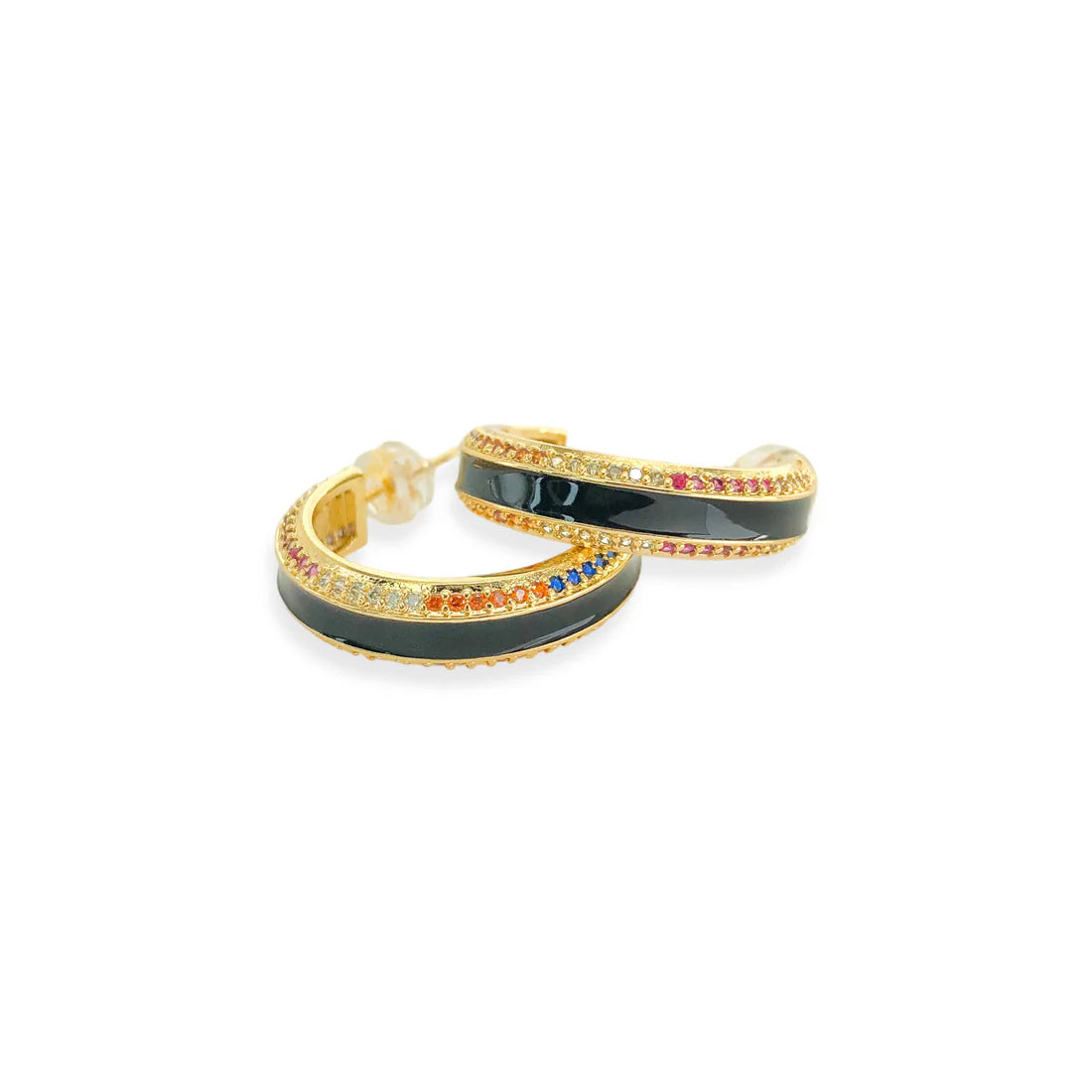 *FINAL SALE* CZ Stone Lined Gold Enamel Hoop Earrings