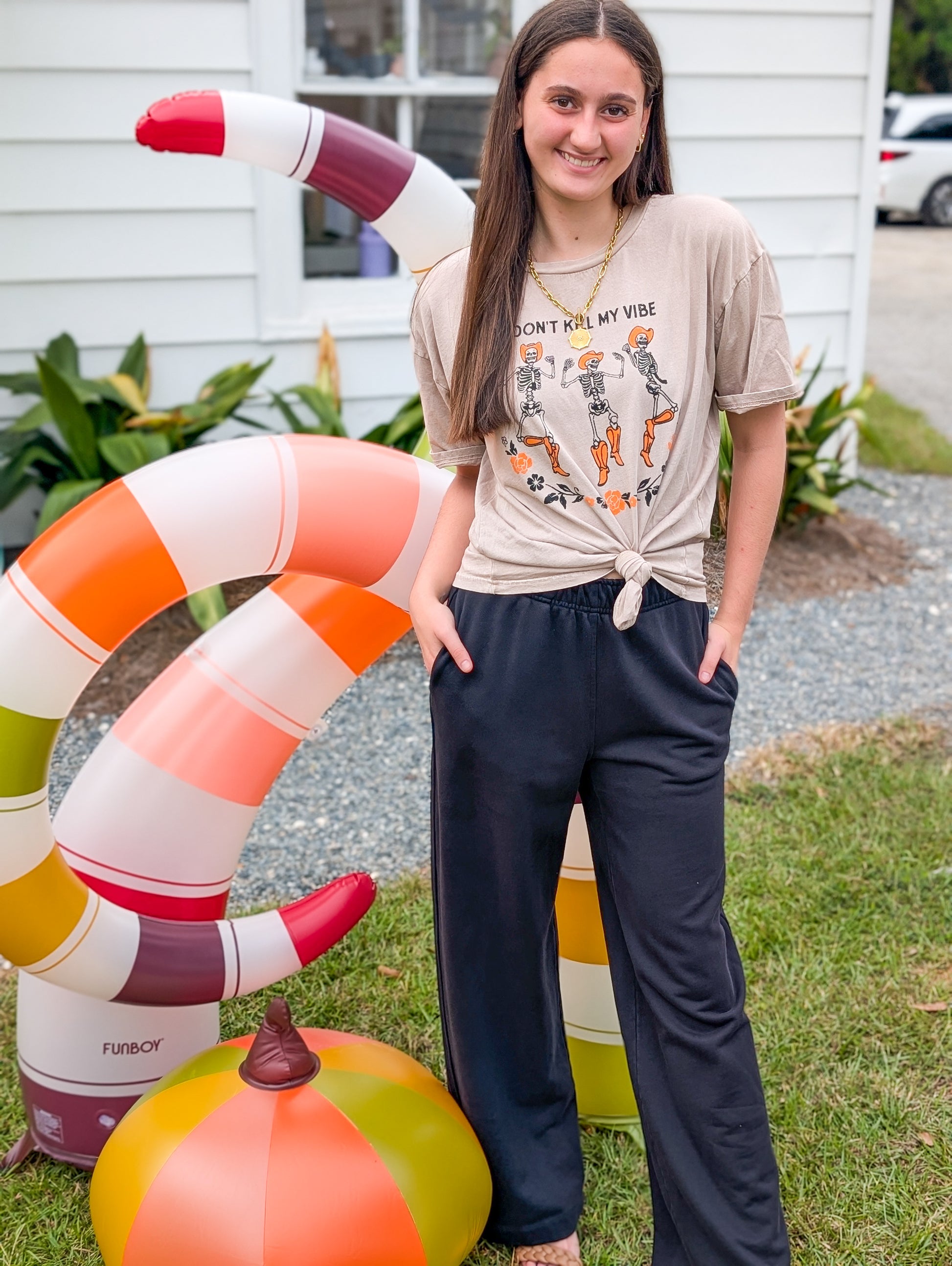 Get in the spooky spirit with our Don't Kill My Vibe Mineral Graphic Tee! This retro-inspired Halloween tee features a unique design and soft fabric for ultimate comfort. Perfect for adding some festive fun to your wardrobe. Don't miss out on this must-have item!