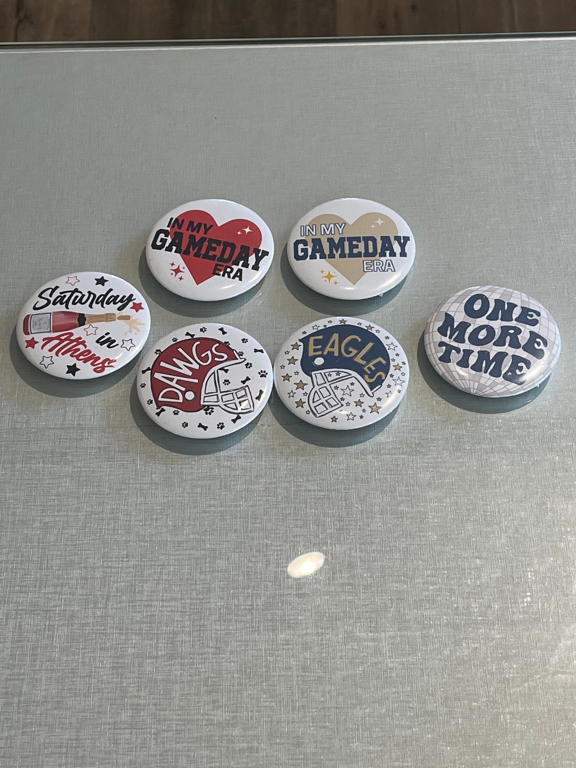 Show your team spirit proudly with these 2.25 inch Football Game Day Pins! Perfect to pin to your favorite game day outfit, bag, or denim jacket, these eye-catching buttons are a great way to express your love of the game. Get excited for game day and show it off with style!