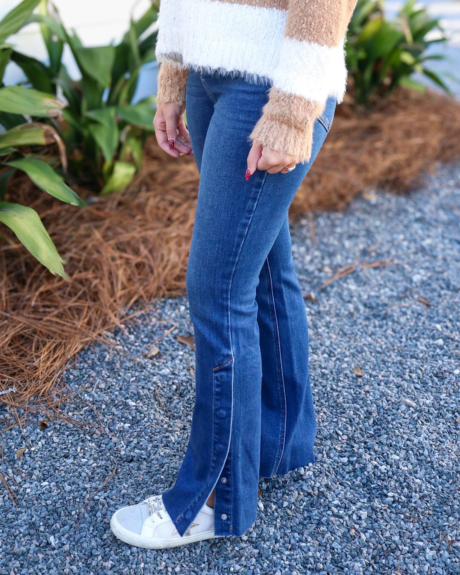 Lunna High Rise Bootcut Denim Jeans Featuring Button Seam