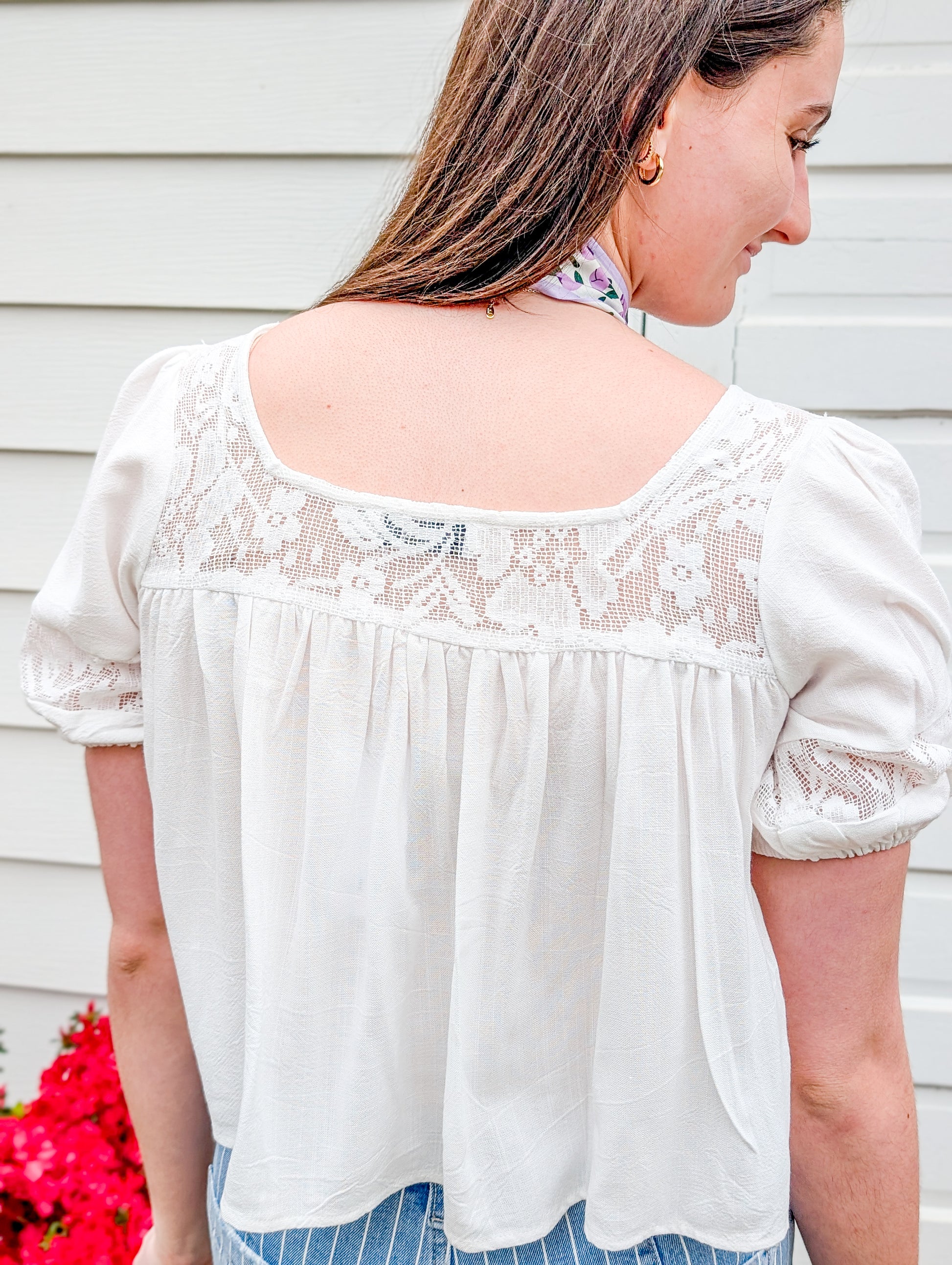 Embrace the carefree spirit of summer with the Misty Lace Inset Top in a dreamy ivory hue. Its delicate lace detail and flowy design create a perfect blend of elegance and comfort, making it an essential addition to your warm-weather wardrobe. Elevate your style and feel radiant every day!