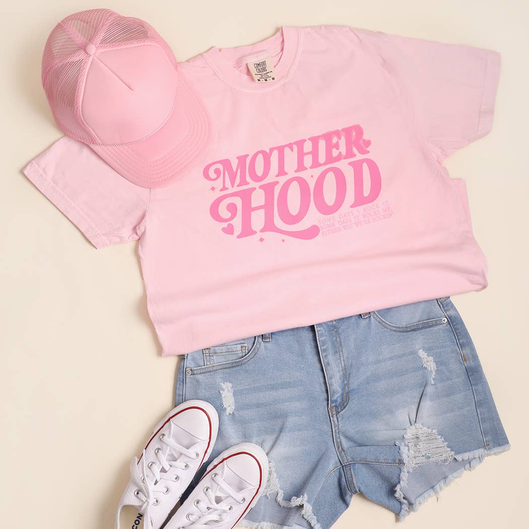 Bold retro typography highlights “Motherhood” with playful heart accents and a relatable mom-life message. “Some days I rock it. Some days it rocks me. Either way, we’re rockin’.” This empowering phrase celebrates the ups and downs of motherhood with humor, confidence, and everyday strength. This garment-dyed heavyweight t-shirt is designed for comfort, durability, and everyday wear. Made from soft ring-spun cotton and finished with 100% cotton threads, it offers a smooth feel and reliable structure. The garment-dyed process provides a naturally worn-in look with minimal shrinkage after washing. Featuring a relaxed unisex fit, this tee is easy to style for casual outfits, layering, or