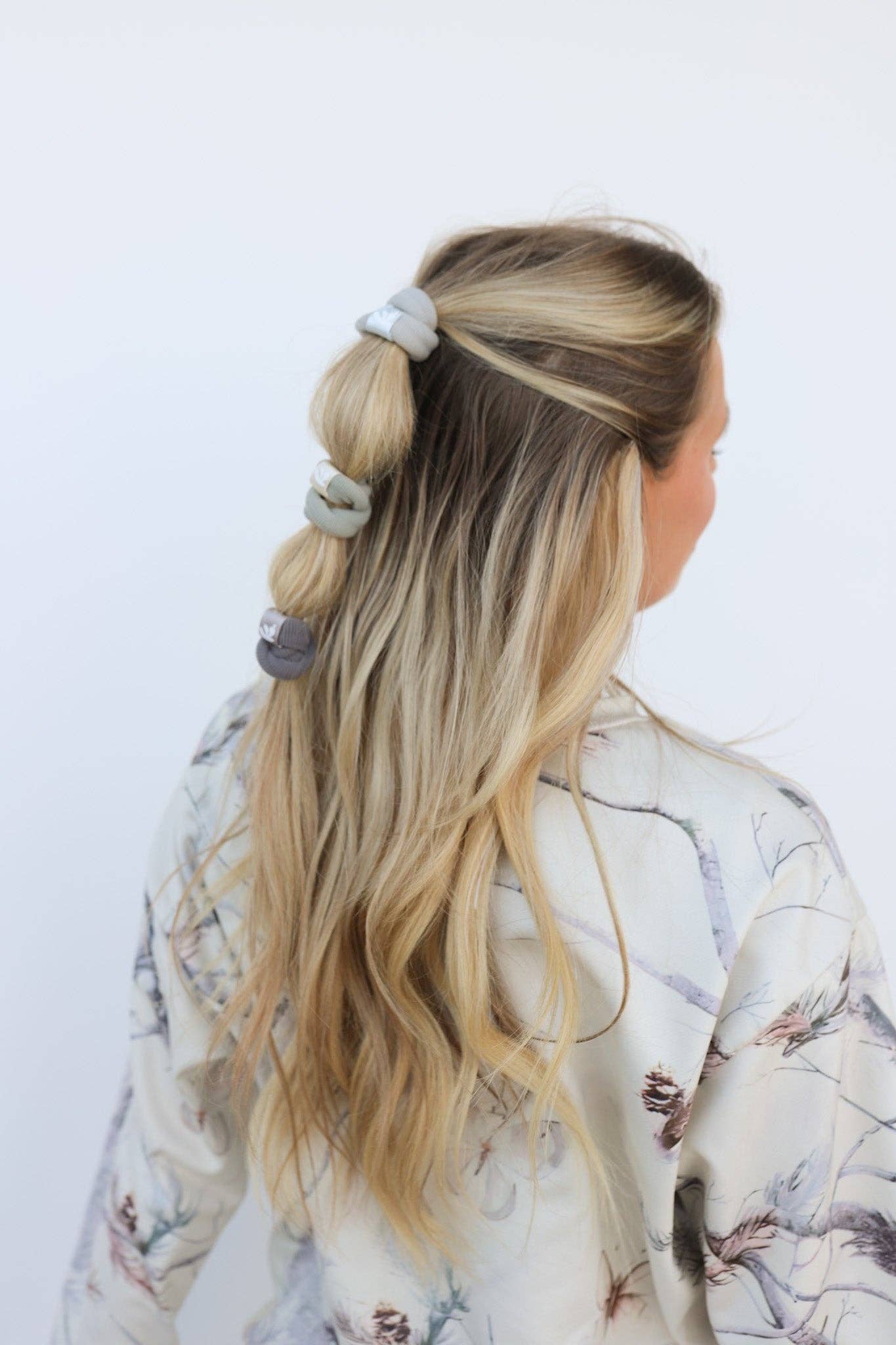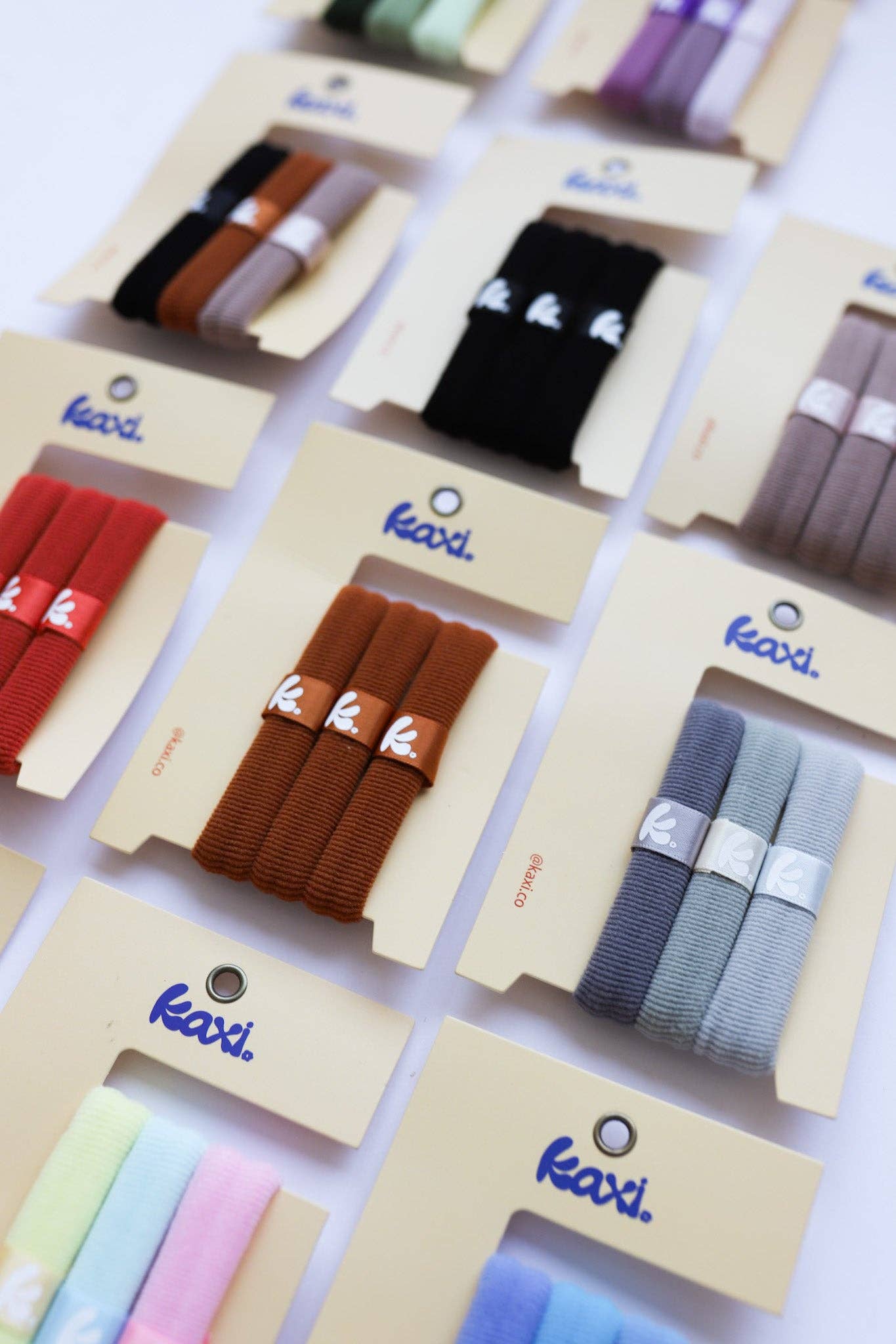 Made from long-lasting, durable nylon material, the SOLID KAXI HIGH INTENSI'TIES' pack of 3 hair ties provides functionality and style and ensures that your hair stays secure during high intensity workouts without causing damage or pain. Say goodbye to breakage and discomfort with this elastic-free design, suitable for all hair types. Whether for pool days, intense workouts, or everyday use, these hair ties are the perfect choice for any occasion.